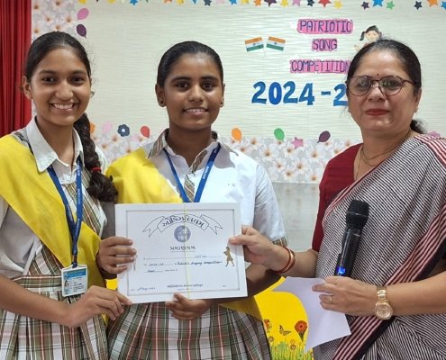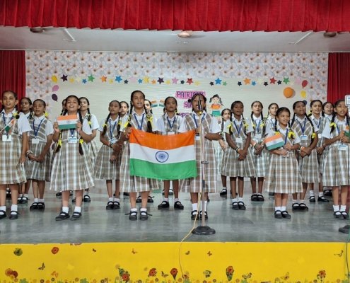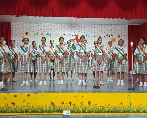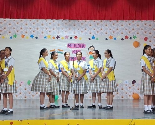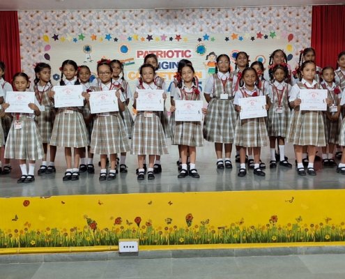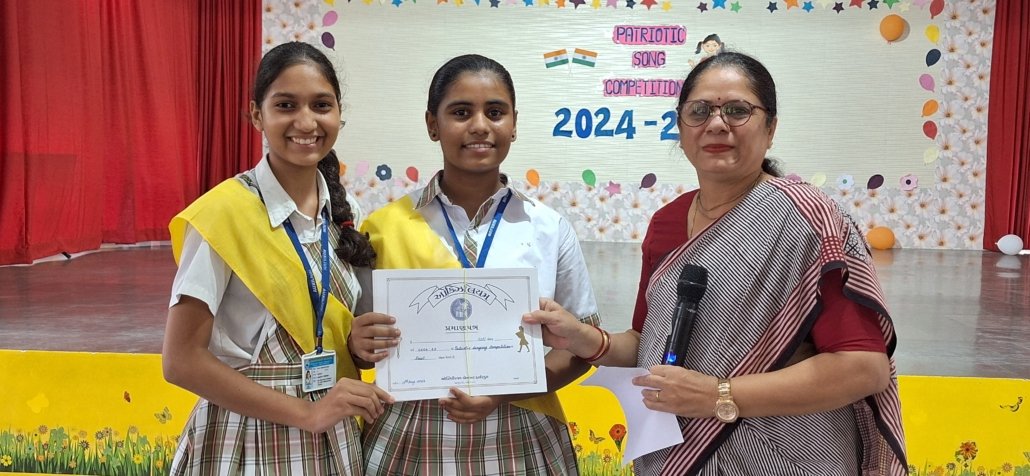 On August 13th and 14th, 2024, the school hosted a patriotic singing competition for students across all sections, including Primary, Middle School, Higher Secondary, and the Gujarati Medium. The event saw enthusiastic participation from students competing for the top prize. The judges selected the top two groups from each section as winners, who were presented with certificates of achievement. All other participants were also recognized with certificates of participation.