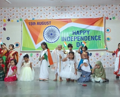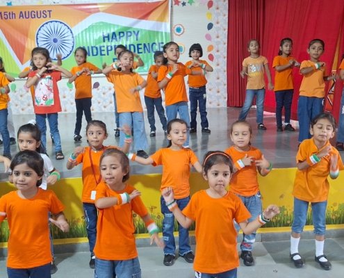 On the eve of August 14, 2024, the kindergarten children presented a special program to celebrate Independence Day. Each class performed patriotic and action songs, showcasing their love for the country in their adorable way.