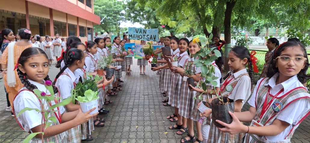 Our school celebrated Van Mahotsav Week with a vibrant series of activities that deepened our connection to nature and sustainability! Students from both the English medium exchanged saplings, sharing the excitement of nurturing new life and fostering a greener community. Together, we planted saplings around the campus, creating a “green legacy” that will continue to thrive and inspire us for years to come.